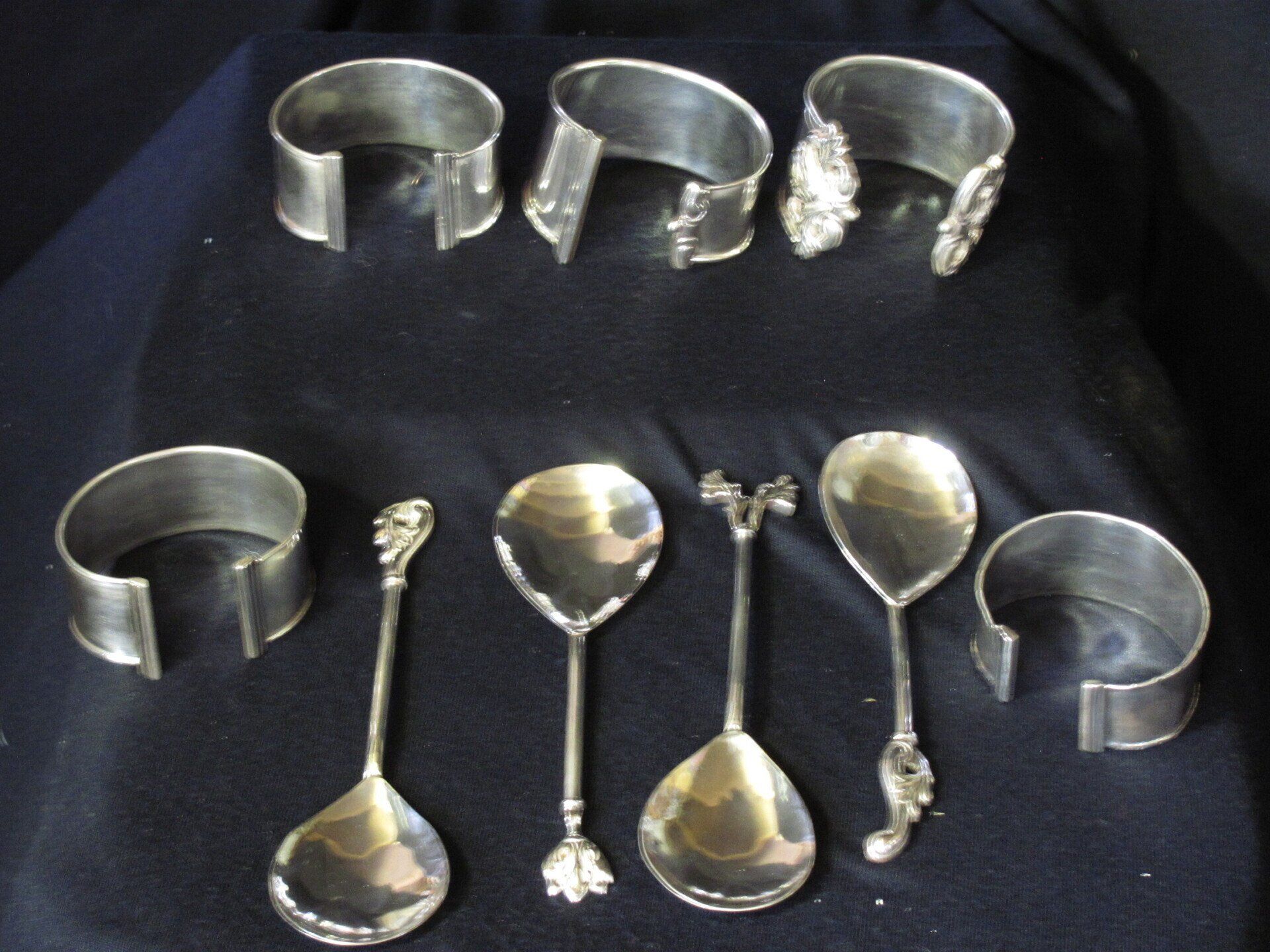 I like to work to commission, working with a client to make something special and unique, very often changing an old and precious piece of jewellery into something new – although making a silver rose bowl into earrings and bangles was an interesting challenge which took three of us (thanks Lizzy and Pete) a week! I also like to play, using scrap, just to see what happens, and trying out new tools and materials just for fun – I have an impressive collection of pliers just cos I can’t resist them…. Generally, my work is big and organic, although I love some geometric designs. Nothing is repeatable.... even my pairs of earrings are each different - well our ears are too!
