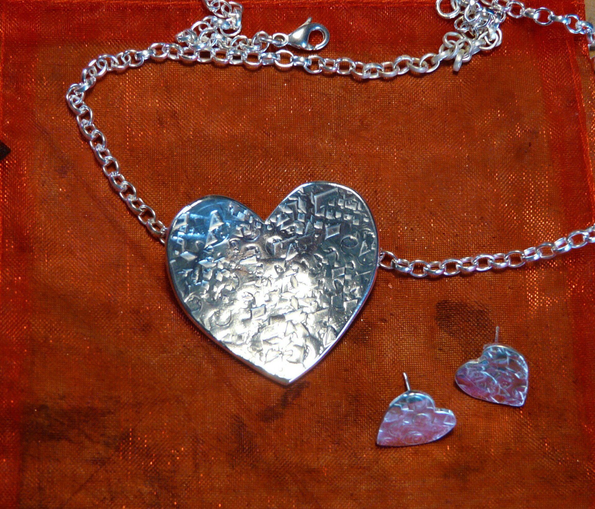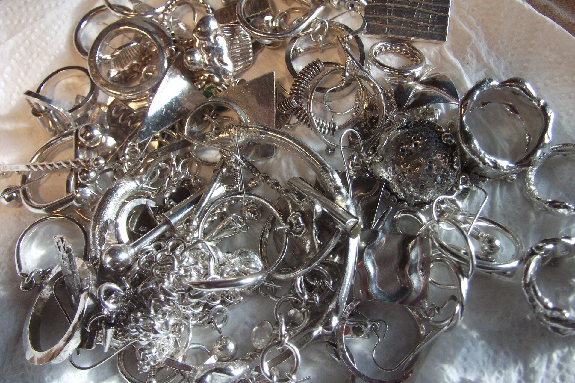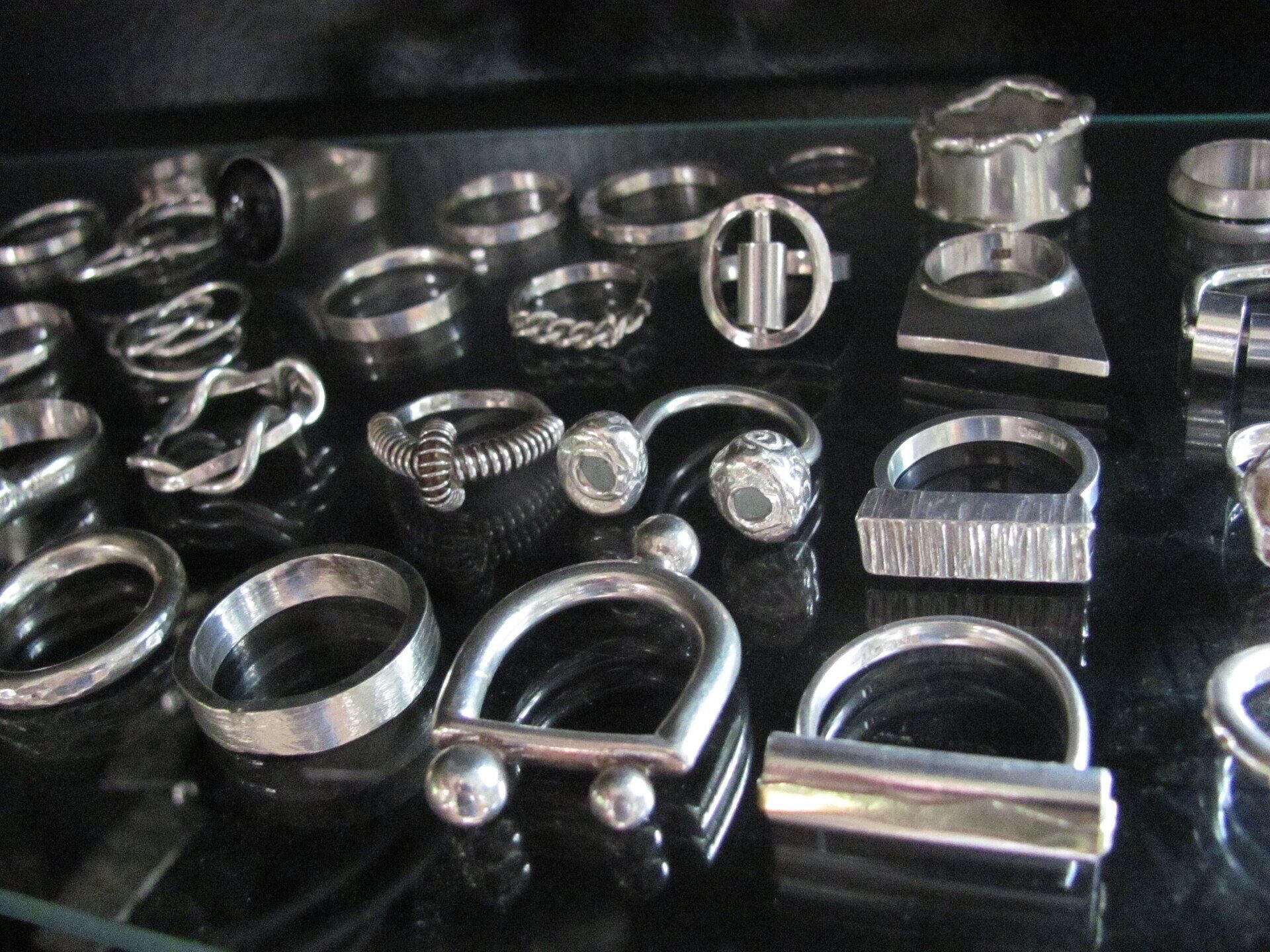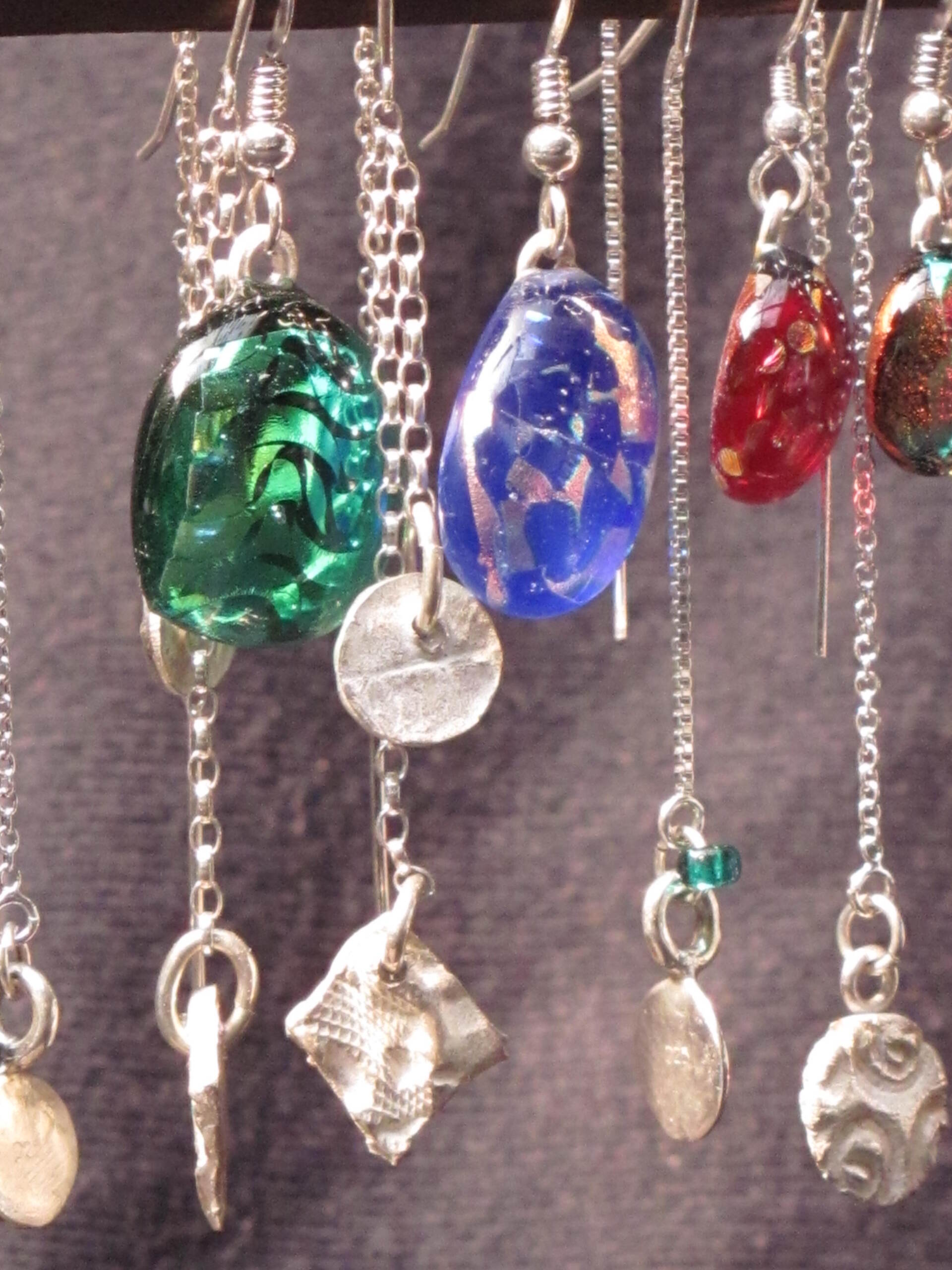 I like to work to commission, working with a client to make something special and unique, very often changing an old and precious piece of jewellery into something new – although making a silver rose bowl into earrings and bangles was an interesting challenge which took three of us (thanks Lizzy and Pete) a week! I also like to play, using scrap, just to see what happens, and trying out new tools and materials just for fun – I have an impressive collection of pliers just cos I can’t resist them…. Generally, my work is big and organic, although I love some geometric designs. Nothing is repeatable.... even my pairs of earrings are each different - well our ears are too!