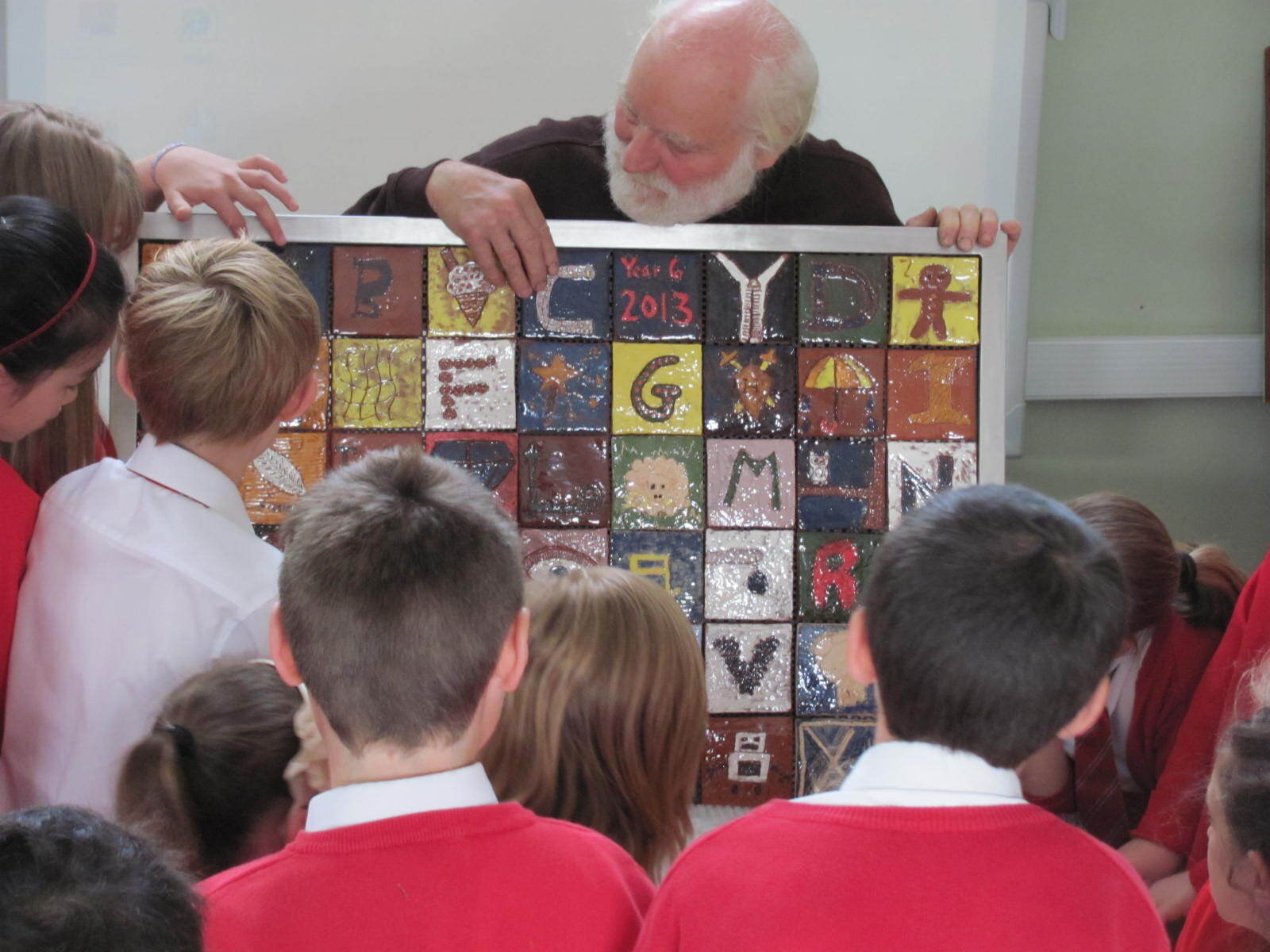 In these images you can see several projects which are more installations than sculpture per say, and several pictures show process – making, ideas and design workshops, and voting. One of the pictures shows the children (Year 6) of this small Primary School working out how to move the totem pole into place using levers and ropes, and another image shows the children digging foundations for the sculpture – real work, we call it, and it’s an important part of the project – see more on this under school projects tab.